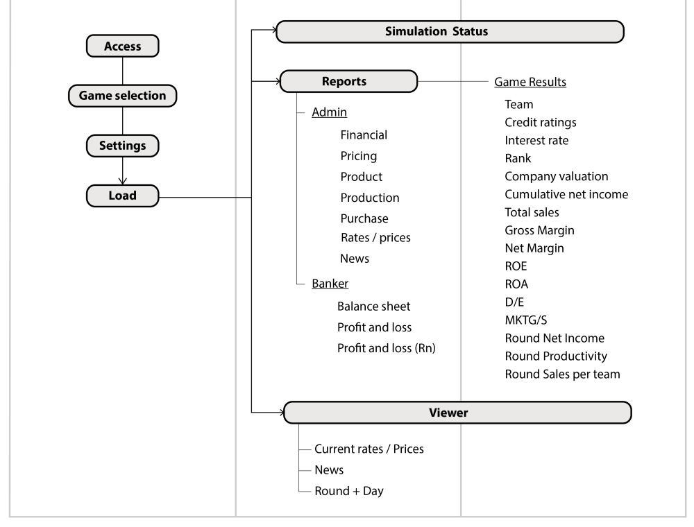 The simulations are set up and controlled from through the ERPsim Simulation Administration Console , a web application that serves as an interface between the SAP system, the Simulation Event Generator, and the end users (Professors and Students).
